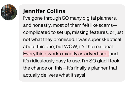 "I’d never used a digital planner before and was worried it would be too much. It’s simple, organized, and makes planning way easier than I thought."